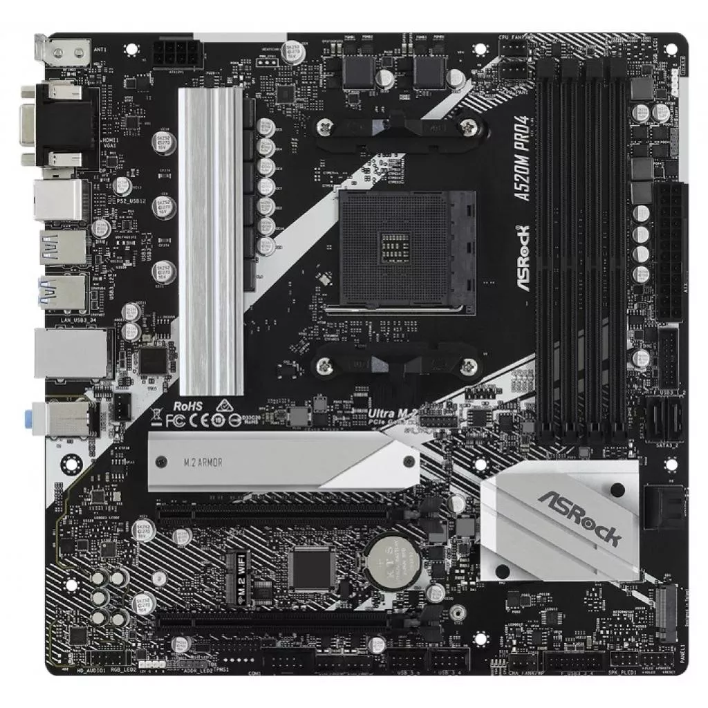 Материнская плата A520M Pro4 формата Micro-ATX. Оптимизация системных параметров в один щелчок.