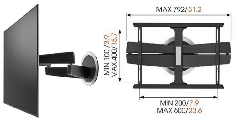 В процессе выбора крепления обращайте внимание и на такой параметр, как максимально допустимая диагональ плазмовой панели. В случае с наклонно-поворотными моделями данный параметр является достаточно важным. От размеров ТВ техники будет зависеть угол и степень поворота в горизонтальной и вертикальной плоскости. Не рекомендуется выбирать слишком большой кронштейн, габариты которого существенно превосходят сам телевизор. Это будет выглядеть не эстетично. Плюс большие кронштейны естественно стоит больше.