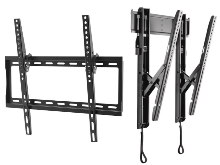 Наклонно-поворотные кронштейны для телевизора настенного типа - позволят выставить угол наклона как вперед/назад, так и вправо/влево. Здесь вы сможете максимально точно выбрать угол под которым можно будет созерцать информацию с ТВ. Стоит помнить, что при установке важно обеспечить достаточно места для поворотов монитора. Стоимость таких крепежей на порядок дороже, в сравнении со стационарными настенными и наклонными аналогами.